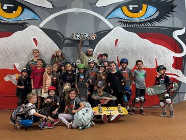Our week-long camps are geared for ages 5-12, with highly skilled coaches teaching the fundamentals of skateboarding in a fun instructional environment. Our goal is to help your skater improve on their current skateboarding skillset while making lifelong friends and building self-confidence along the way.